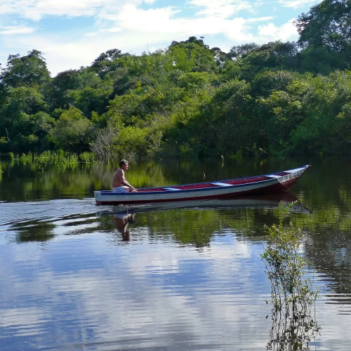 Navegaremos por las aguas del río Negro hasta la plataforma del delfín rosado para momentos de observación de estos simpáticos animales, símbolo de la Amazonía. Continuaremos navegando hasta una comunidad para apreciar un ritual con danzas y gestos indígenas, donde los visitantes son invitados a interactuar con los nativos.